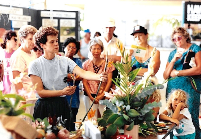 As her reputation expanded so did her business which included sophisticated multi-tiered arrangements, baskets, bouquets, wreaths, and gift boxes that she packed and shipped fresh to individual and corporate clients worldwide. She put her design experience to use by creating custom-made to order arrangements for many of the luxury hotels in the Hawaiian Islands and up and down the East and West Coast.